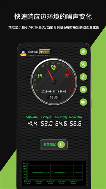 随时测量环境噪音,直观显示分贝值。