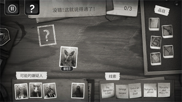 黑白侦探风格与幽默解谜相结合。